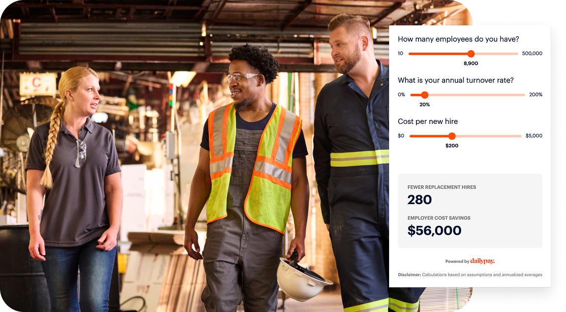 Replacing an hourly worker is expensive and time-consuming. Offering DailyPay to your employees has a measurable upside for your business.