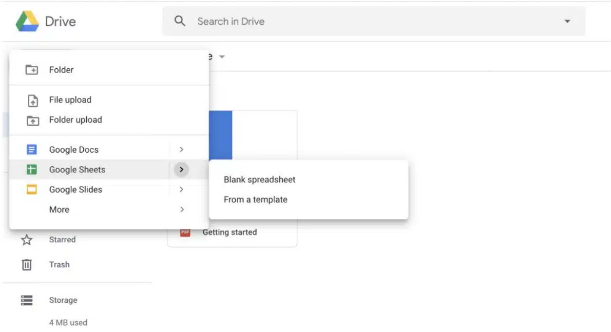 My favorite tool for keeping track of my expenses is the pre-built templates from Google Sheets. Once you enter your Google Drive, you can go to the top left corner, click “New,” scroll down to Google Sheets, and select, “From a template.”