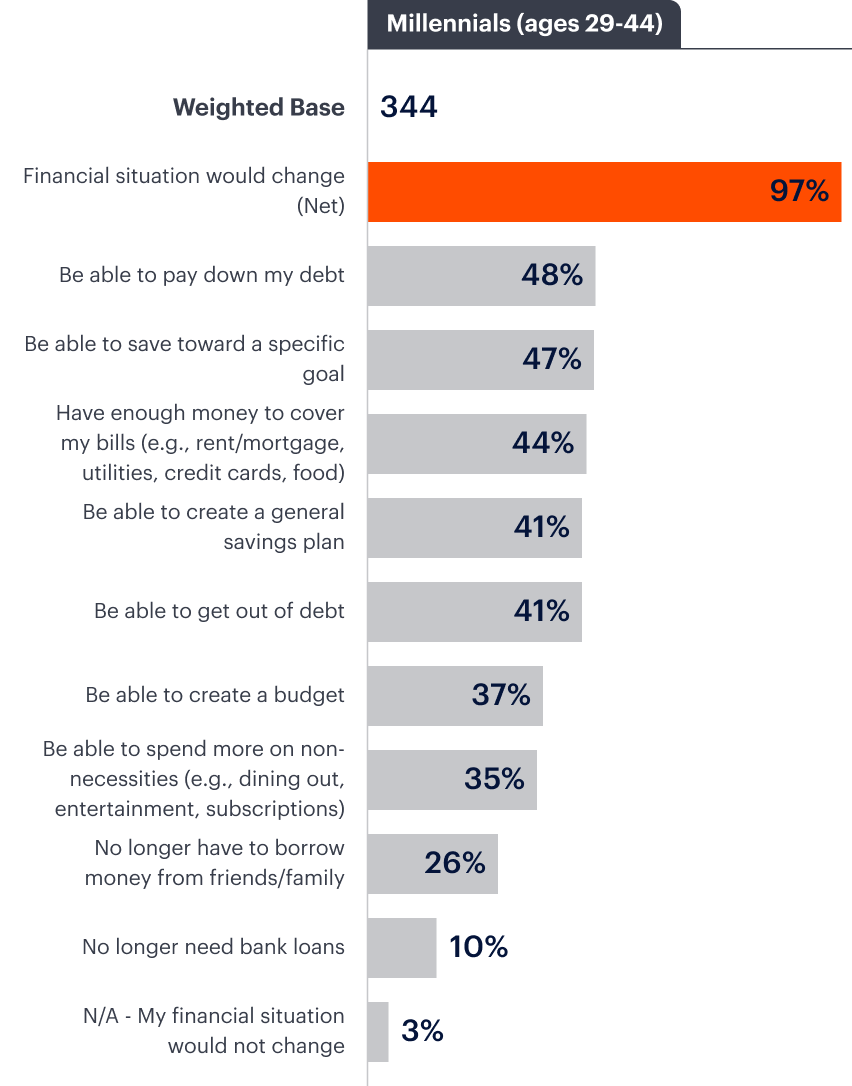 Apart from the option you indicated would most help your current financial situation, which of the following would also help your current financial situation?