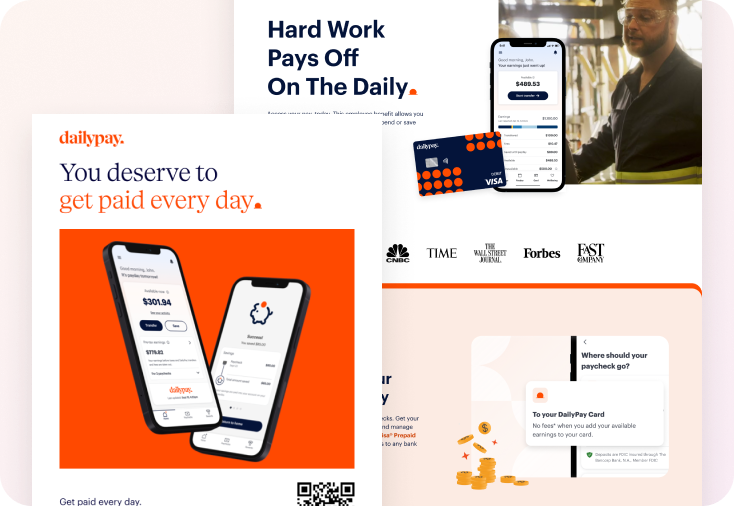 DailyPay is committed to the success of our HCM partners. Our dedicated partnership team will work closely with you to develop a tailored go-to-market strategy and offer ongoing support to help you effectively promote your embedded EWA offering. We also provide a comprehensive suite of resources, including talk tracks, email templates, presentations, and case studies.