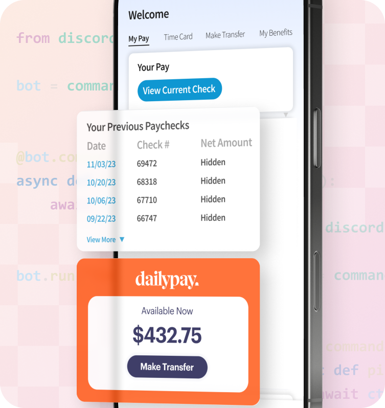 DailyPay prioritizes data security and privacy, complying with all relevant regulations and maintaining PCI DSS Level 1 and ISO 27001 certifications, and annual SOC Type 2 audits. Our Security and Trust & Safety teams leverage the latest technology and industry partnerships to proactively protect all sensitive employee data—including personal information and financial transactions—with bank-grade security measures like encryption and multi-factor authentication, both in transit and at rest. To further ensure the highest level of protection, we have the DailyPay Vulnerability Disclosure Program so everyday users can help us identify and address potential security risks. Backed by strong financials and failover redundancy, DailyPay is built on data safety. It's not just a feature; it's the essence of our design.